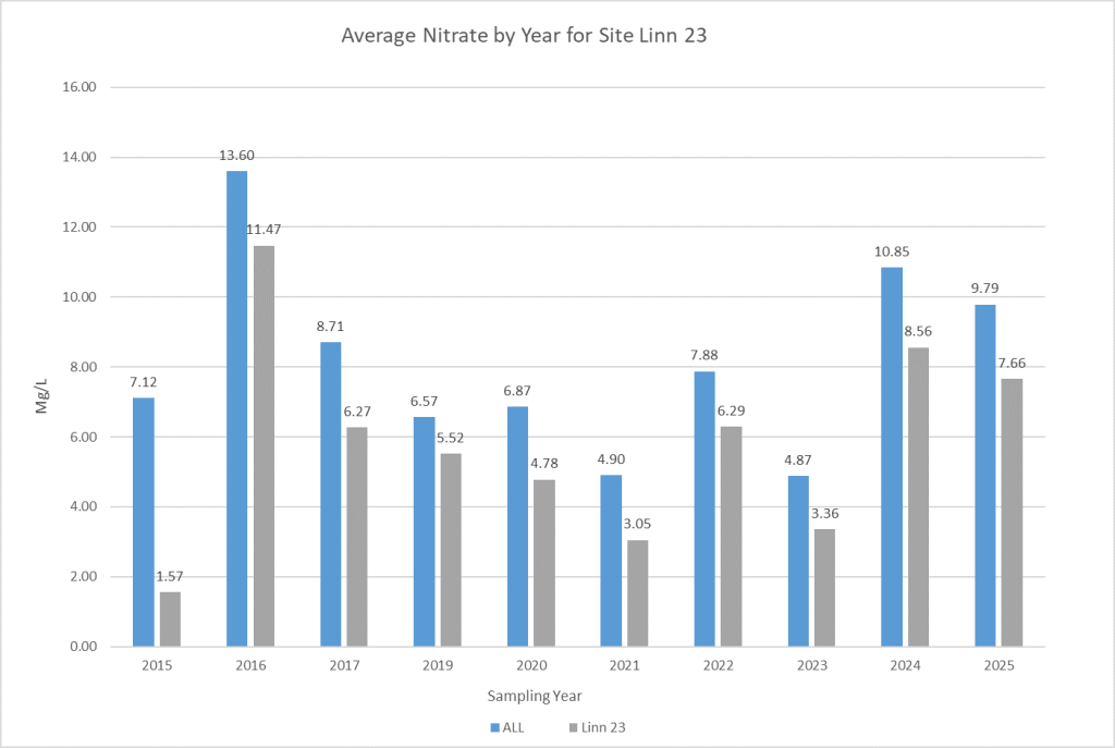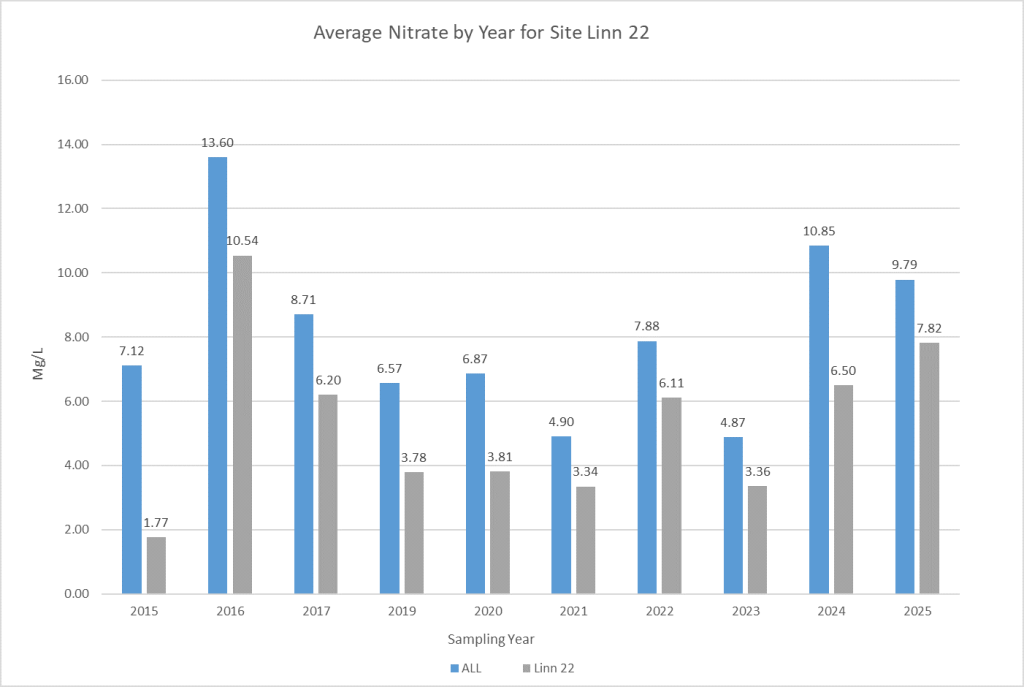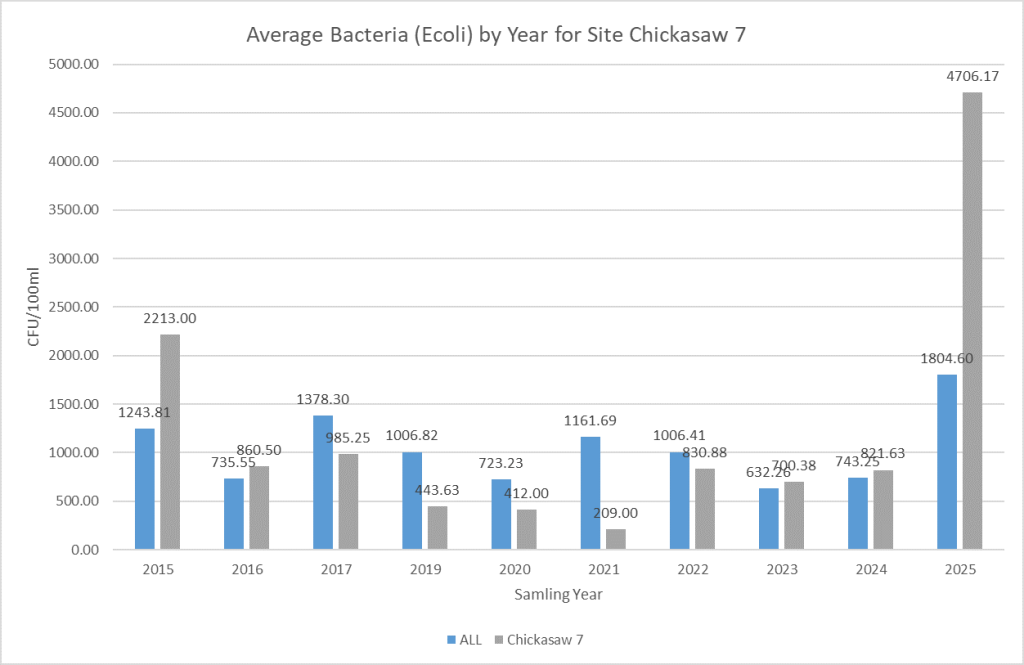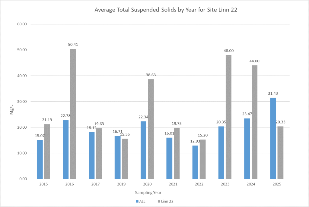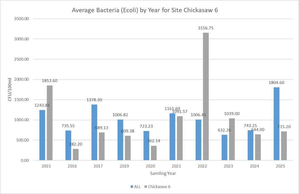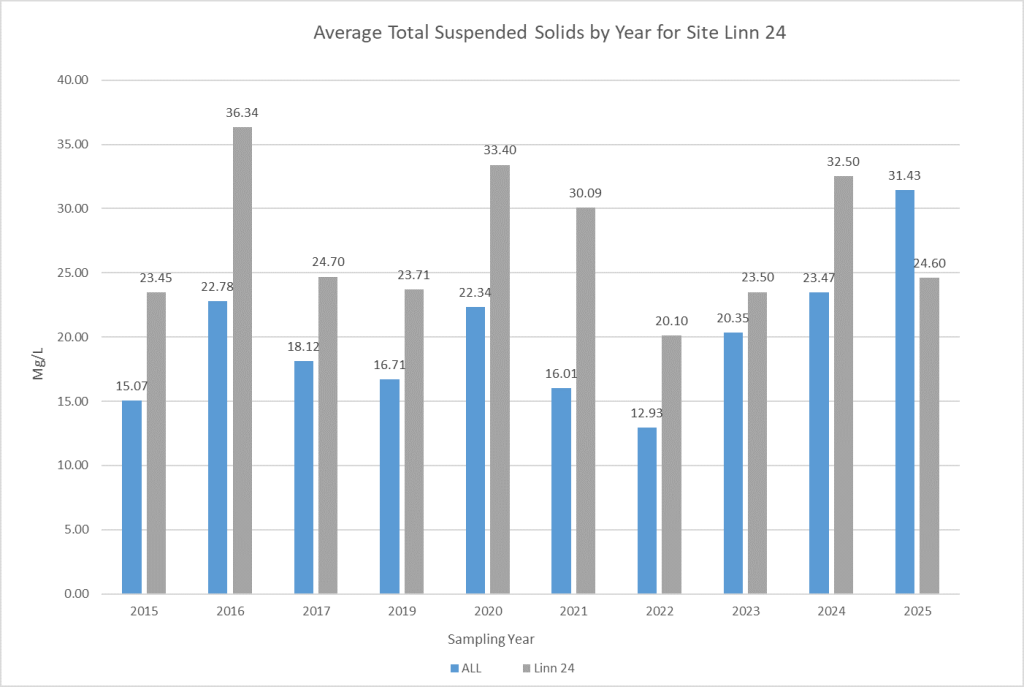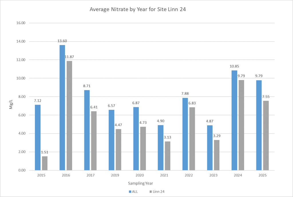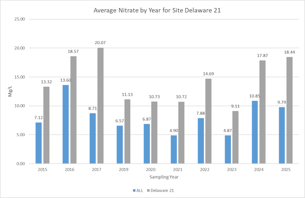 Click on the site of interest to explore nitrate, phosphate, total suspended solids, and bacteria data for that site. The tables associated with each site average results from each sampling year compared to the watershed-wide average.