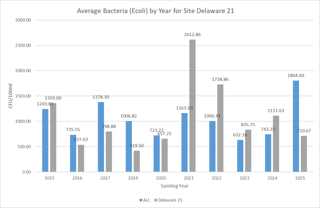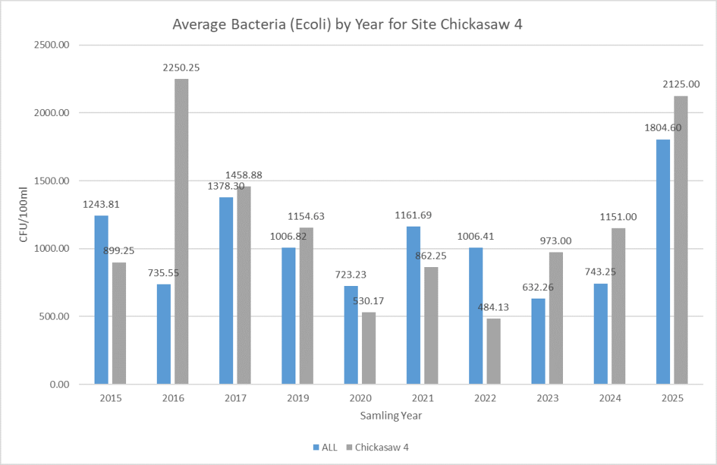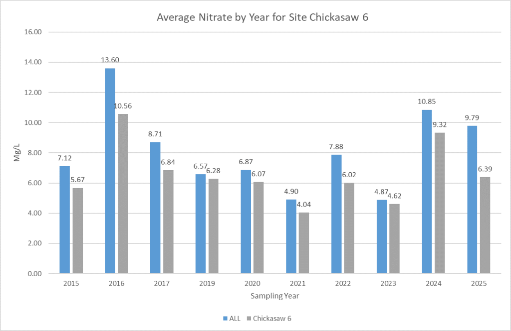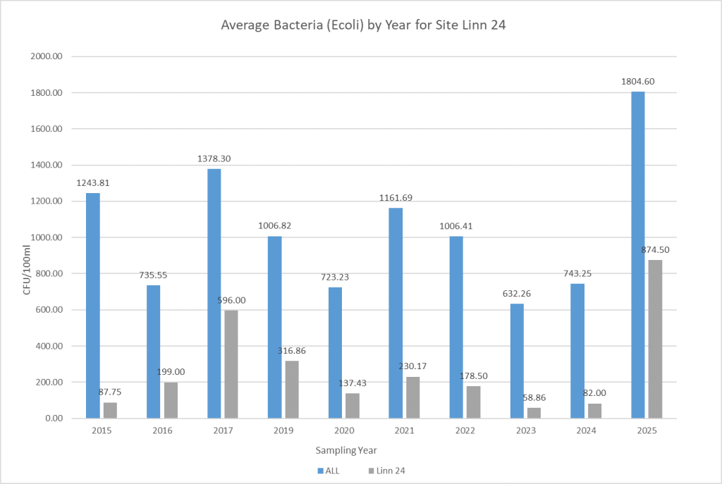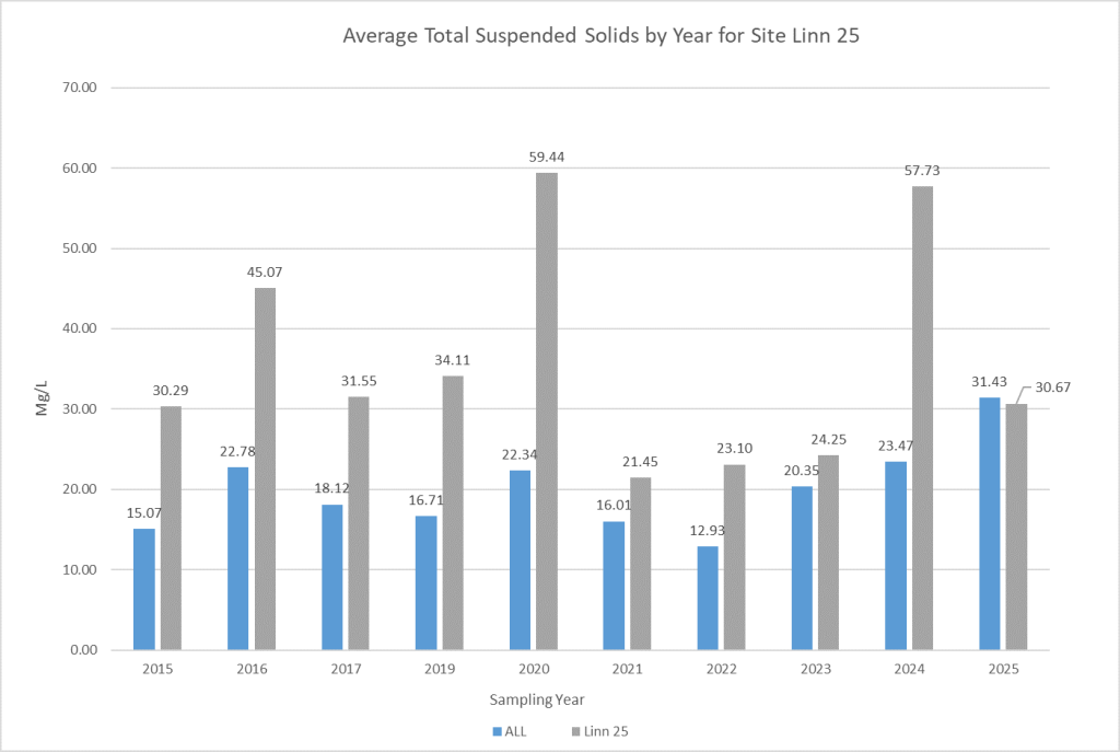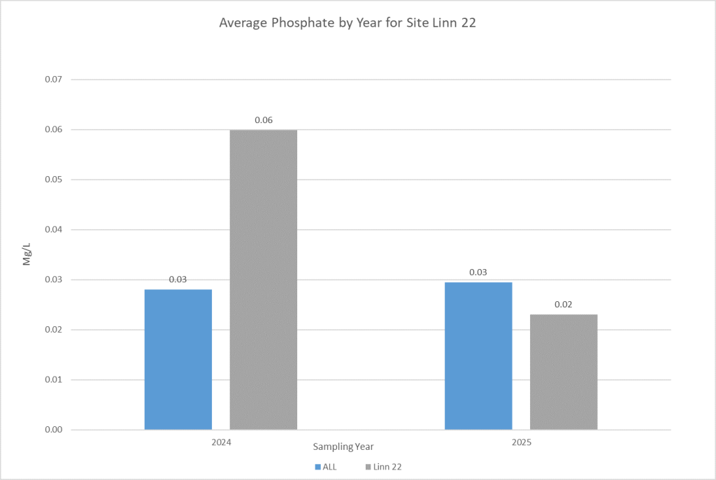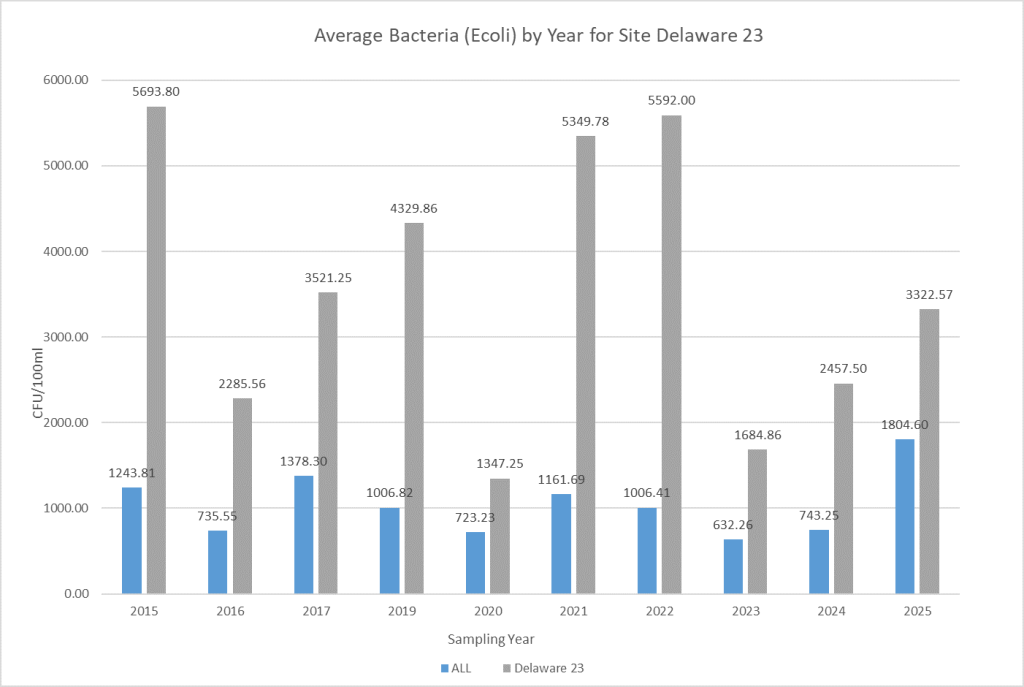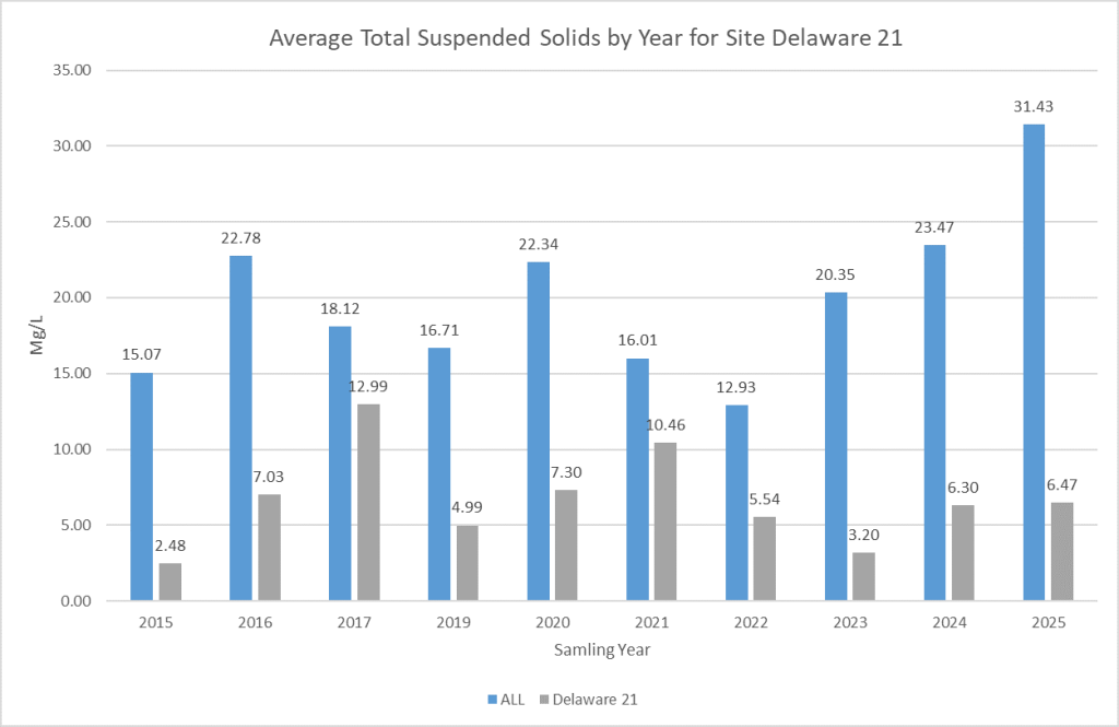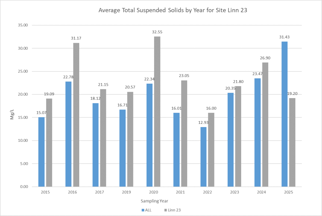 Click on the site of interest to explore nitrate, phosphate, total suspended solids, and bacteria data for that site. The tables associated with each site average results from each sampling year compared to the watershed-wide average.
