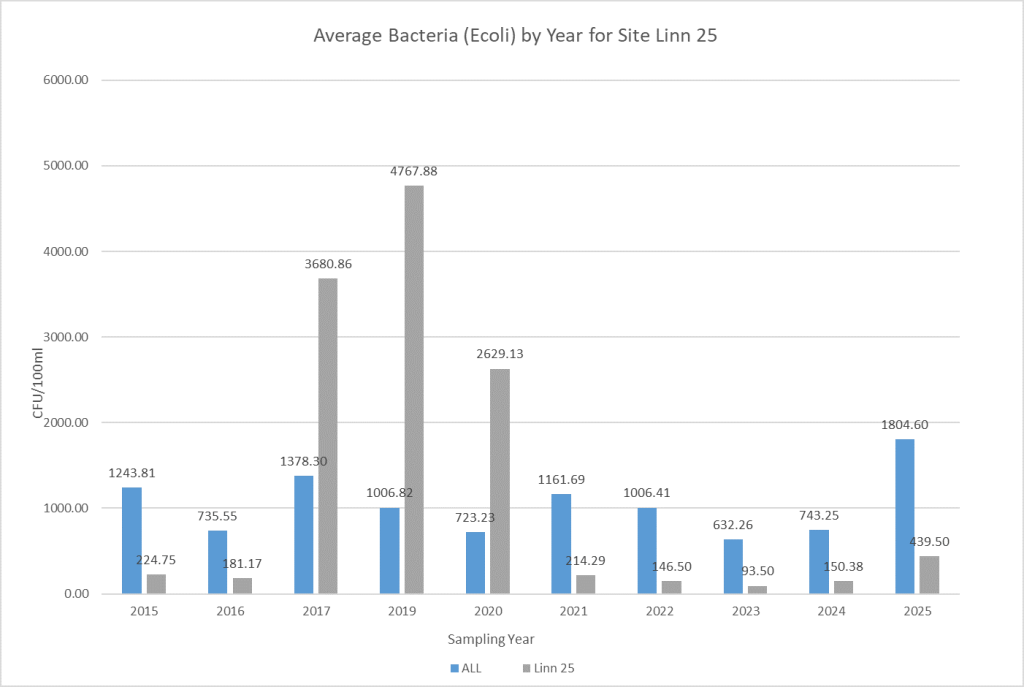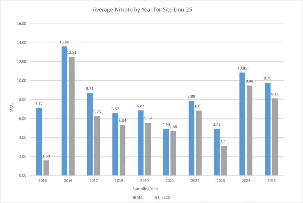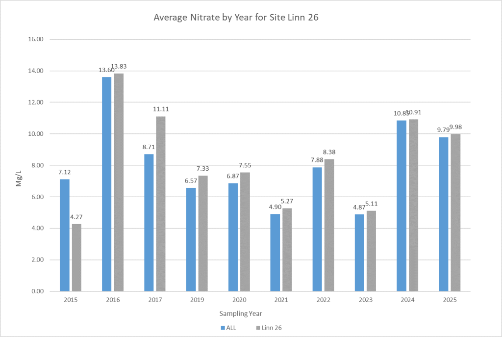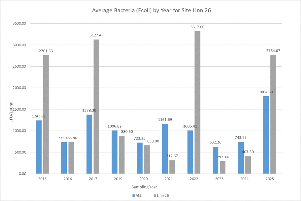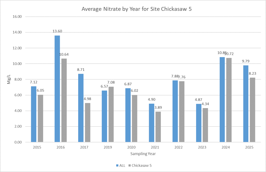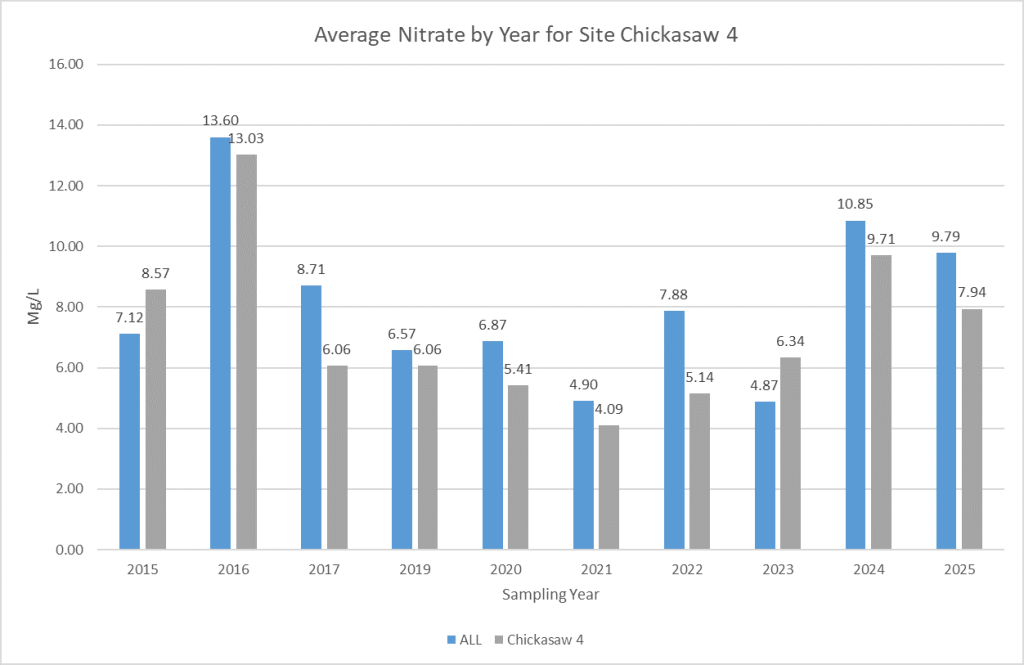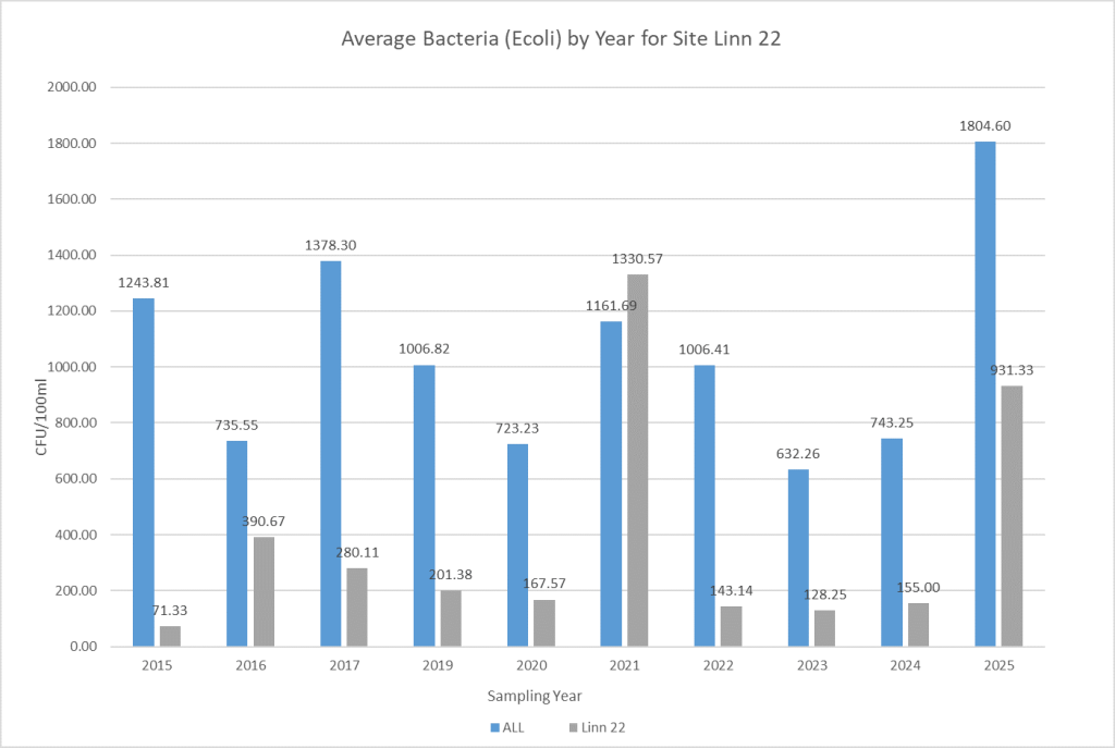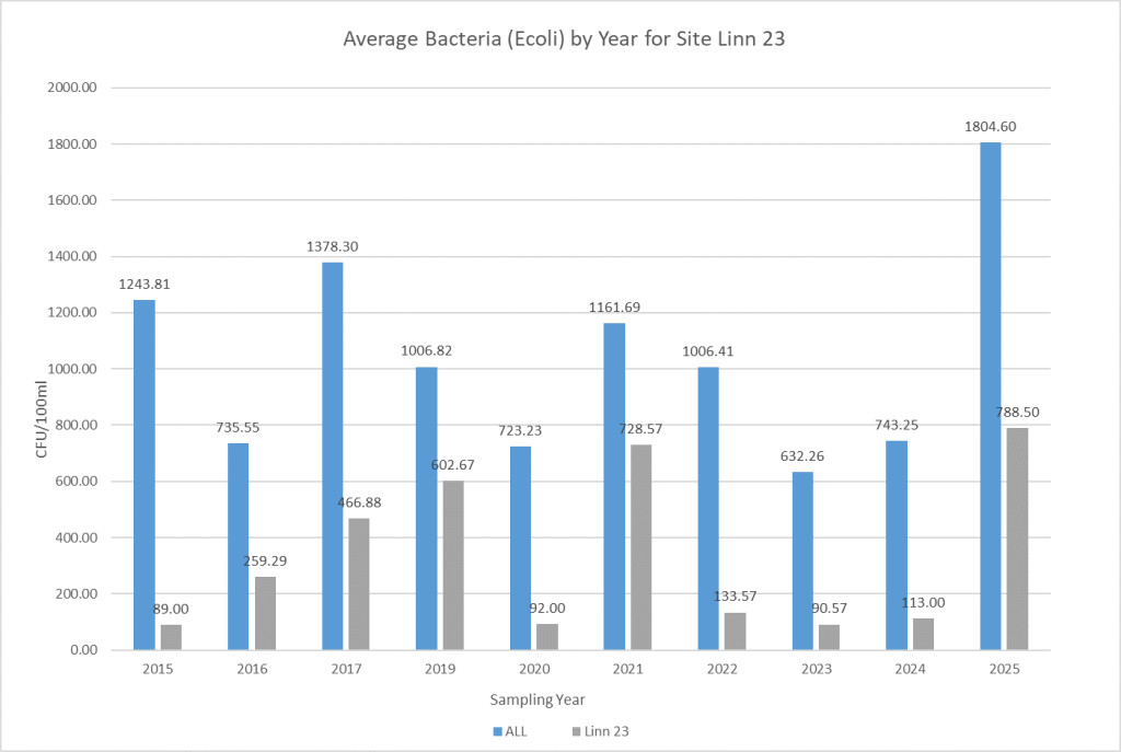 Click on the site of interest to explore nitrate, phosphate, total suspended solids, and bacteria data for that site. The tables associated with each site average results from each sampling year compared to the watershed-wide average.