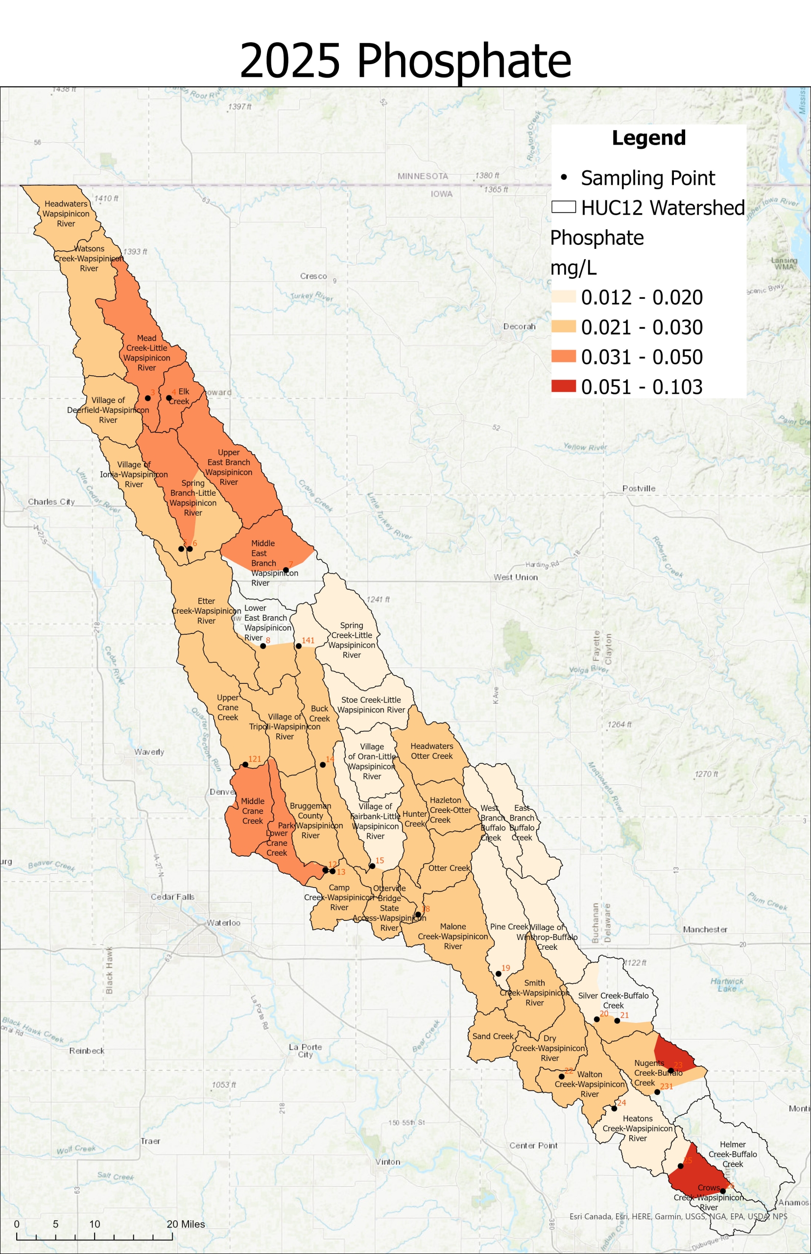Beginning in 2024 changes in analysis and costs caused the analysis of phosphorus to change from Total P and Dissolved P to Phosphate. Natural phosphate levels in rivers typically range from 0.005 to 0.05 mg/L, but pollution can push these levels significantly higher. Levels above 0.03–0.1 mg/L can stimulate excessive plant growth and harmful algae blooms. (USGS)